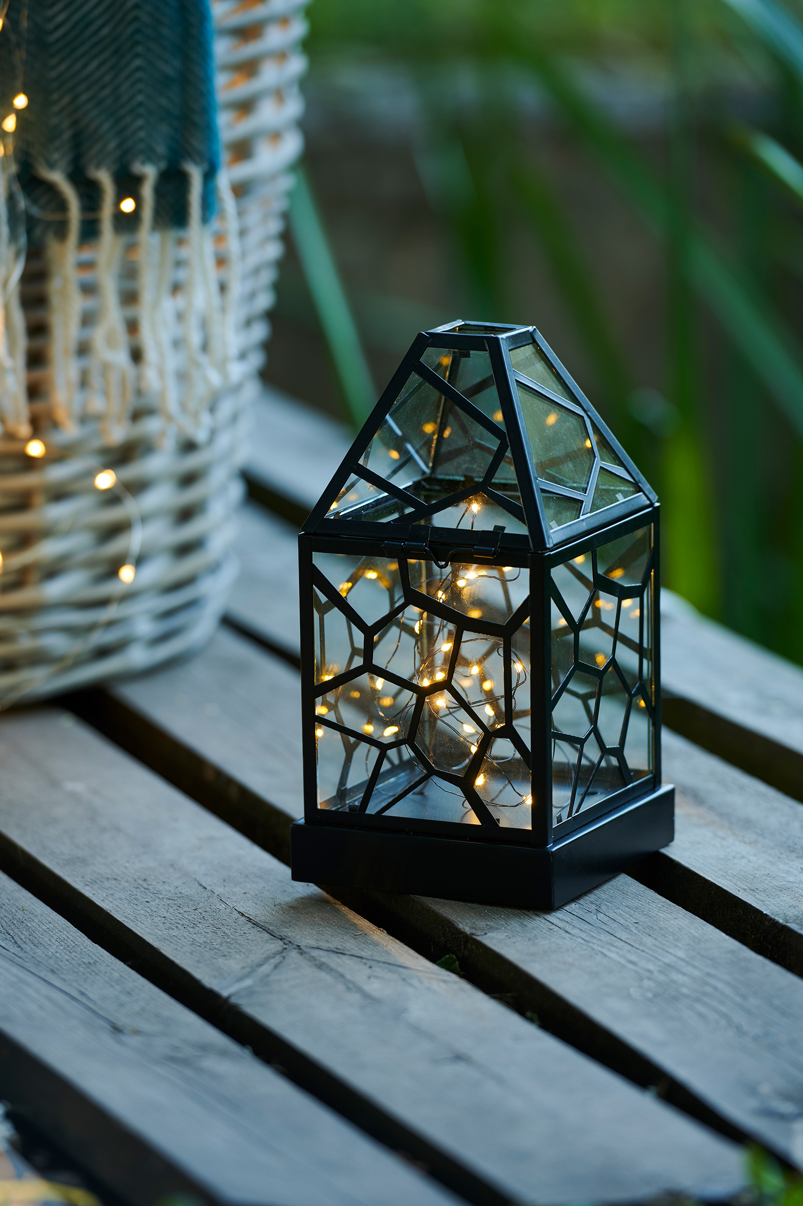 The Alfred Lantern is painted in black and comes inclusive a light chain with 40 Led Lights. It is compatible with a Sirius Remote Control.